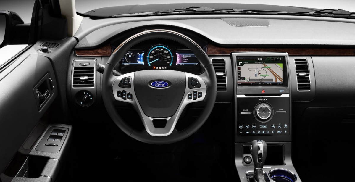 Ta díky instalaci plynule proměnného časování všech ventilů (Ti-VCT) vykazuje o něco vyšší výkon (210 kW) i točivý moment (345 N.m). Nejvíce novinek najdeme uvnitř vozu. Ford Flex se dočkal přepracované palubní desky s přístrojovým štítem opatřeným dvojicí obrazovek LCD soustavy MyFord a osmipalcovým dotykovým displejem uprostřed. Změnily se také některé potahové a obkladové materiály a vzhled volantu. V rozšířené výbavě se nově nachází například adaptivní tempomat (ACC) či hlídání mrtvého úhlu zrcátek.