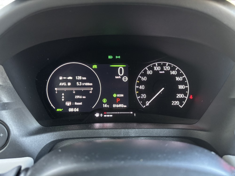 Ve městě se HR-V chová spíše jako čistý elektromobil a spalovací motor se spíná jen v případě, že akumulátor vykazuje nízkou úroveň nabití. Jeho spouštění je téměř neslyšitelné, řidič je informován prostřednictvím ikony v přístrojovém štítu. Akumulátor o kapacitě 1,08 kWh se nabíjí velmi rychle, díky čemuž se průměrná spotřeba v městském provozu dá bez většího úsilí stabilně udržet lehce nad hranicí 5 l/100 km.