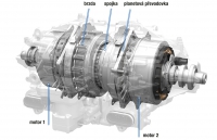 Navazuje na osu klikového hřídele motoru, ale je umístěna až za zadní nápravou; aby mohl být zadní převis karoserie co nejkratší, vyniká spojkami a diferenciálem uloženými ve dvouhřídelovém uspořádání vedle sebe. Klimatizace samozřejmě nechybí, ale pro efektivnější hospodaření s energií je včleněna do elektrické soustavy, tedy bez mechanické vazby na šestiválec. Spalovacímu motoru asistuje v převodovce vestavěný, kapalinou chlazený a při regenerativním brzdění funkci generátoru zastávající elektromotor Direct Drive Motor a dvojice kompaktních elektromotorů v jednotce TMU vpředu. Zážehový motor je nejdůležitějším hybným prvkem vozu, elektromotory mu asistují a přispívají k účelnějšímu hospodaření s energií. Dle našich zkušeností ten v převodovce účelně překlenuje vrozené váhání šestiválce na prudké pokyny plynovým pedálem (aktivně působí přibližně do 80 km/h, ale rekuperovat umí i v o něco vyšších rychlostech), akcelerace se právě díky němu dostavuje okamžitě, tedy ještě než šestiválec „zavyje“.