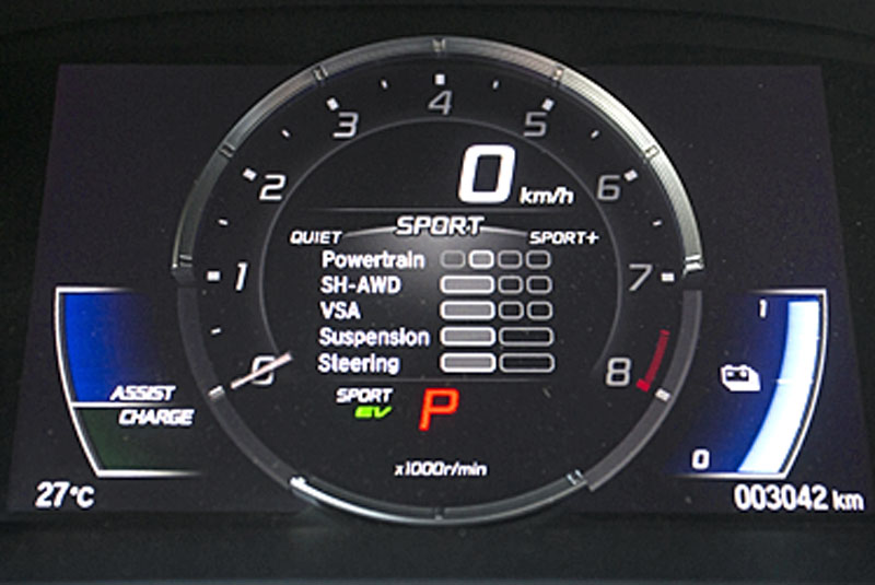 Hybridní systém Sport Hybrid SH-AWD; a) kapalinou chlazený zážehový šestiválec V6/75°, uložený podélně před zadní nápravou; DOHC V4, plynule proměnné časování všech ventilů Dual-VCT, přímé a nepřímé vstřikování paliva, přeplňování dvěma jednoduchými turbodmychadly (plnicí tlak až 105 kPa) s chladiči stlačovaného vzduchu, mazání se suchou klikovou skříní; 3493 cm3 (ø 91 x 89,5 mm), 10:1; 373 kW (507 k)/6500 – 7500 min-1 a 550 N.m/2000 až 6000 min-1, maximální otáčky 7500 min-1; blok motoru i hlavy válců z hliníkové slitiny; b) synchronní, kapalinou chlazený elektromotor/generátor (Direct Drive Motor) na konci klikového hřídele, 35 kW (48 k)/3000 min-1 a 147 N.m/500 – 2000 min-1; c) dva synchronní elektromotory/generátory v jednotce TMU (Twin Motor Unit) s planetovou převodovkou, volnoběžkou a brzdou na přední nápravě, každý 27 kW (37 k)/4000 min-1 a 74 N.m/0 – 2000 min-1; d) jednotka IPU (Intelligent Power Unit) sestavená z li-ionového akumulátoru (72 článků ve čtyřech samostatných segmentech) napříč za zadními sedadly a PDU (Power Drive Unit) ve středovém tunelu s trojicí samostatných měničů 12 V DC/DC, vysokonapěťovým vedením a centrální řídicí jednotkou, dodávající proud jednotkám Direct Drive Motor a TMU; maximální výkon soustavy 427 kW (581 k) a 646 N.m.