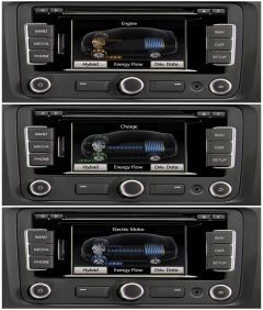 Místo klasického otáčkoměru má Jetta Hybrid ručičkový ukazatel výkonu, který řidiče informuje o aktuálním režimu hybridní soustavy. Toky energií mezi jednotlivými členy soustavy zobrazuje pomocný digitální displej v přístrojovém štítu (graficky ukazuje i relativní výkon elektromotoru) nebo hlavní barevný displej audiosystému na středovém panelu, kde lze podrobně sledovat i aktuální spotřebu včetně doby jízdy s nulovými emisemi (menu Zero Emission).