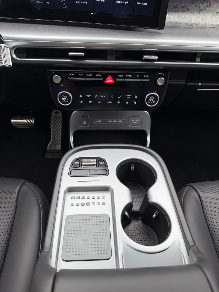 Ioniq 9 je postaven na 800V platformě E-GMP známé z typů Ioniq 5 a Ioniq 6. Umožňuje nabíjení výkonem až 233 kW a je vybaven NCM akumulátorem s využitelnou kapacitou 110,3 kWh. Při udávané spotřebě 20,6 kWh na 100 km to znamená teoretický dojezd až 600 km na jedno nabití. Realita je však o poznání skromnější. Při ustálené rychlosti 90 km/h jsme naměřili spotřebu 24,6 kWh, zatímco týdenní kombinovaný provoz překročil 30 kWh na 100 km, to však stále znamená akční rádius přes 300 km.