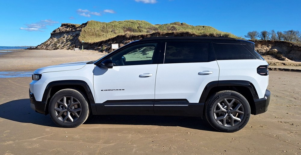 Motor má docela chuť k životu a s 48V mild hybridním systémem si dobře rozumí. Pohotovostní hmotnost 1,6 tuny je na vůz této kategorie příjemně nízkou hodnotou, Compass je překvapivě hbitý, a to nejen při manévrování v omezených prostorech, ale též v ostřeji ježděných serpentinách. Odhlučnění interiéru od motoru a aerodynamických ruchů je zdařilé (a to i kolem zrcátek), totéž platí rovněž o podvozku. Ten je obecně nastaven zřejmě nejlépe ze všech sourozenců. Je tuhý, a zároveň poddajný, takže kola i na nerovnostech v zatáčkách spolehlivě kopírují vozovku a závěsy pohlcují i ostřejší rázy. Brzdy bychom ocenili ostřejší, na druhou stranu ani prudké zpomalení v zatáčce vůz nezneklidní. Elektrická verze je pochopitelně poněkud těžkopádnější a nijak svižně se vám s ní (na rozdíl od té benzínové) chtít jezdit nebude.