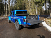 Nicméně pokud vám ani toto není dost a máte k dispozici pár dalších silných rukou ku pomoci, můžete odmontovat také zbytek kabiny v její zadní části. Pro všechny tyto úkony vám postačí sada nářadí, jež je součástí výbavy každého Jeepu Gladiator. Zcela bez ochrany ale nezůstanete ani pak: po odstranění výše zmíněných karosářských prvků se odhalí robustní trubková konstrukce, podélně propojující sloupky A, B a C a příčně zpevněná ještě příčkami mezi sloupky A a B. Toto modulární řešení v kombinaci s otevřenou ložnou plochou nabízí dosud nevídanou šíři využití osobního automobilu i v těch nejneuvěřitelnějších podmínkách. Instalovat lze různé stany pro cestování jinak nepřístupnou krajinou a převážet všemožné sportovní vybavení či stavební materiál a krmení pro dobytek.