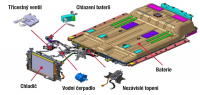 Synchronní elektromotor s permanentním magnetem uložený vpředu napříč, lithium-iontový polymerový akumulátor: