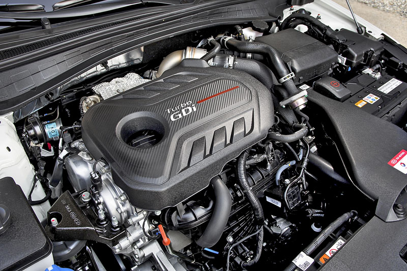 Kapalinou chlazený zážehový řadový celohliníkový čtyřválec, uložený vpředu napříč; DOHC 4V, CVVL; elektronické přímé vstřikování; EU6; a) 2.0 GDI PHEV: typ 2.0 NU, 1999 cm3 (ø 81 x 97 mm); 13,5:1; 115 kW (156 k)/6000 min-1 a 189 N.m/5000 min-1; synchronní motor AC s permanentními magnety, 50 kW (68 k)/0 – 3300 min-1 a 205 N.m/0 – 2330 min-1; celkově až 151 kW (205 k)/6000 min-1 a 375 N.m/2300 min-1; Li-Ion polymerový akumulátor 9,8 kWh/360 V ve dvou segmentech uložených napříč před a nad zadní nápravou, dojezd na čistě elektrickou energii až 54 km, plné dobití z běžné sítě 230 AC/10 A za 5 h, rychlonabíjení 230 AC/15 A 3,3 kW za 2,5 h; b) 2.0 T-GDI: typ Theta II, přeplňování turbodmychadlem TwinScroll; 1998 cm3 (ø 86 x 86 mm); 10,0:1; 180 kW (245 k)/6000 min-1 a 353 N.m/1350 – 4000 min-1.