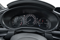 Silnou stránkou Mazdy 3 je její bohatá výbava, protože již základní verze obsahuje kromě jiných položek například projekční barevný head-up displej, kožený volant s multifunkčními tlačítky, rozpoznávání dopravních značek, samočinné dálkové světlomety, alarm, ale též navigační systém s rozhraními Apple CarPlay a Android Auto. Nechybí ani bohatá bezpečnostní výbava včetně přednárazového varovného systému s detekcí chodců, hlídání mrtvých úhlů s funkcí sledování příčné dopravy za vozem, funkce udržování v jízdním pruhu s upozorněním na nechtěné vyjetí a v neposlední řadě také adaptivního tempomatu, jenž je k dispozici i pro verzi s manuální převodovkou.
