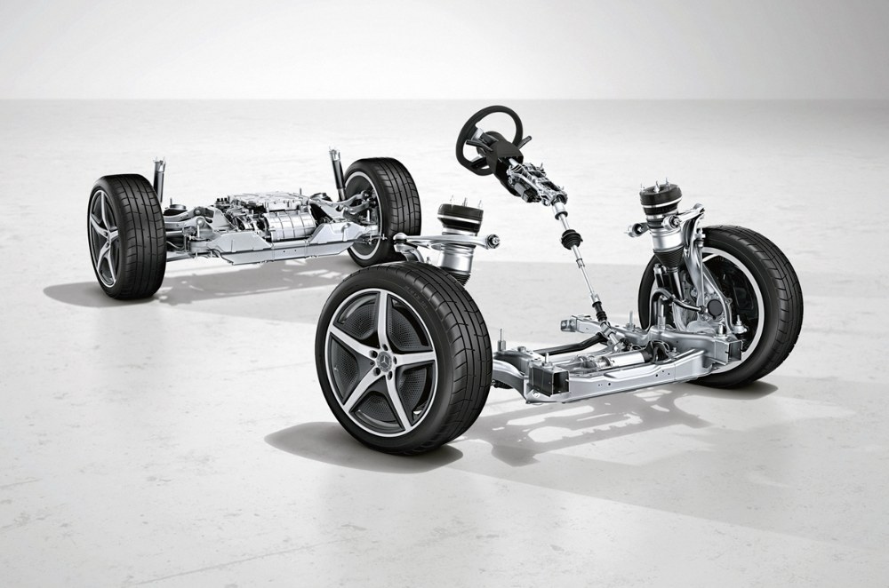 Samonosná ocelová konstrukce s hliníkovými prvky a pomocnými rámy; všechna kola nezávisle zavěšena, vpředu dvojitá příčná ramena, vzadu víceprvkové zavěšení; ocelové pružiny (alternativně vzduchové odpružení), tlumiče, příčné zkrutné stabilizátory; elektrohydraulická brzdová soustava, kotoučové brzdy s vnitřním chlazením; hřebenové řízení s elektromechanickým posilovačem, volitelně řízení zadních kol (až 10˚); pneumatiky 255/45 R 19.