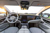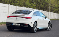 Celkově se s kompaktnějším EQE v reálném světě žije lépe, vůz se i pocitově snadněji řídí a působí, že jej máte „více v ruce“. Možná tento efekt vyvolala i varianta 350+ vybavená pouze jedním elektromotorem, a tedy pohonem zadních kol. I když EQE není vozem se sportovními ambicemi, jeho řízení je jednoduše příjemným zážitkem v duchu klasických sedanů Mercedes-Benz vyšší střední třídy. Odmyslíme-li si specifika elektrického pohonu v podobě jeho charakteristiky, plynulosti a minimální hlučnosti, což jsou samy o sobě atributy přirozeně podtrhující komfort, pocit ve volantu, dokonalá směrová stabilita a celková úroveň pohodlí připomínají klasickou třídu E. V případě testovaného vozu pohodlí navíc umocňoval volitelný vzduchový podvozek Airmatic.