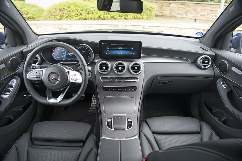 Palubní deska svým tvarem odpovídá třídě C a stejně jako u ní, ani v tomto případě nedošlo v rámci modernizace k propojení displejů hlavních přístrojů a navigace, jako je tomu u většiny ostatních modelových řad značky. V tomto ohledu jsou modely GLC tradiční a sázejí na analogové přístroje, jež lze za příplatek změnit na barevný displej s úhlopříčkou 12,3 palce. Jeho grafika je velmi elegantní, ladí samozřejmě s displejem navigace a odpovídá ostatním modelům značky.