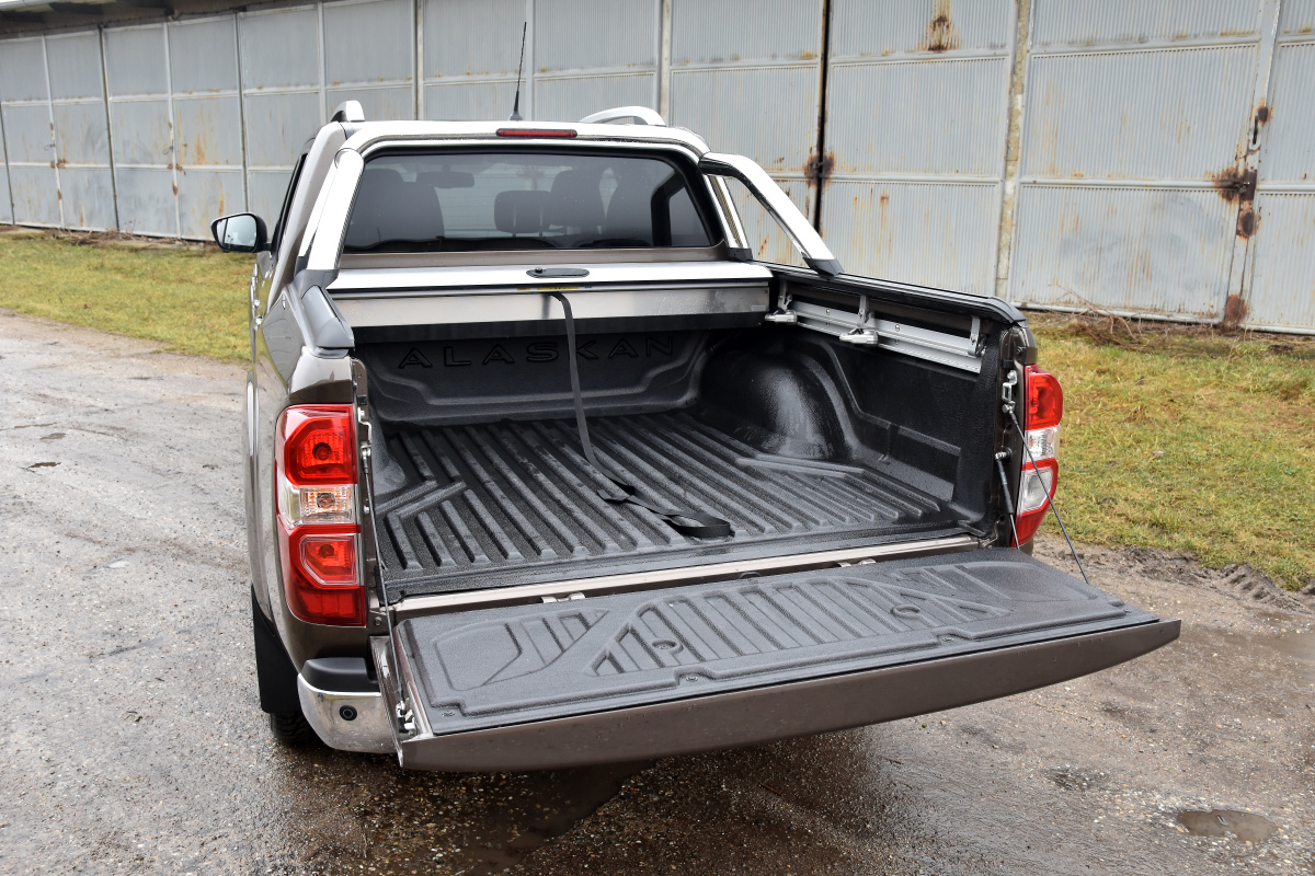 Nabídkou komfortu si tento Alaskan v ničem nezadá s kvalitními cestovními vozy střední třídy. Většina prvků pracoviště řidiče byla převzata z japonského originálu a působí robustním a mimořádně přehledným dojmem, nicméně titěrné ovládání ventilace a navigace žádá místo fortelu kovboje spíše služeb něžných dámských prstů. Za volantem najde vhodnou pozici uživatel různých fyzických proporcí a zvyklostí a záhy ocení dostatek prostoru ve všech ohledech i znamenitý rozhled do všech stran. Přispívají k němu kromě bohaté prosklené plochy také rozměrná zpětná zrcátka, jež v kombinaci s velkorysým rejdem kol (mezi krajními polohami leží celkem 4 otáčky volantem) navíc usnadňují manévrování s tímto 5,4 m dlouhým mastodontem.