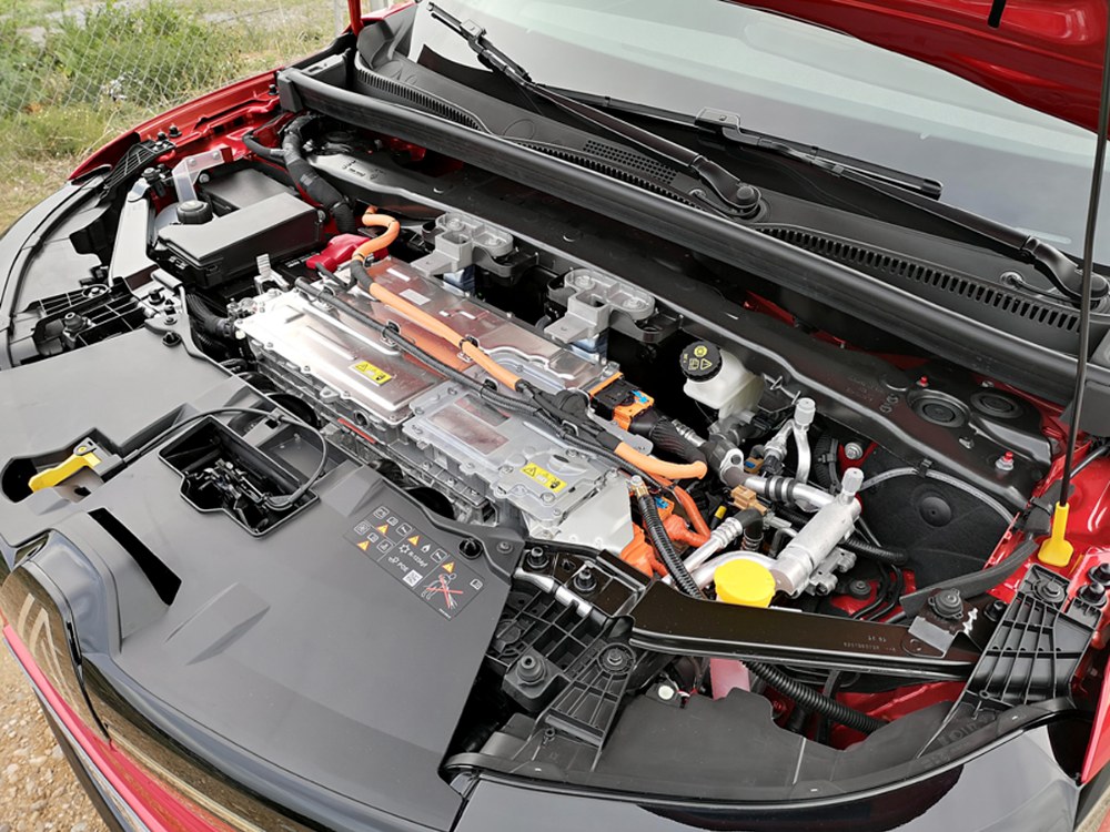 Plně elektrický Renault Megane E-Tech Electric u nás otevřel svůj objednávkový systém letos 1. února (první vozy by se zde měly objevit v dubnu) a vstoupil na trh s poněkud bizarním obchodním označením „Renault Megane E-Tech 100 % Elektrický“, jež ho má rázně odlišit od „normálního“ Meganu, který s přívlastkem E-Tech znamená plug-in hybrid. E-Tech Electric je totiž i přes poněkud nešikovné označení zcela jiným automobilem, postaveným na platformě CMF-EV, vyvinuté aliancí Renault-Nissan-Mitsubishi výhradně pro elektromobily. Oproti většině současné konkurence má poháněcí ústrojí včetně výkonové elektroniky kompletně uloženo vpředu (nabíjecí konektor je v pravém předním blatníku). Důraz se totiž při konstrukci kladl na nízkou hmotnost a koncepce „vše vpředu“ umožnila i zkrátit těžké kabelové svazky na minimum.