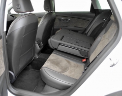 Cestující vzadu mají dostatek místa pro nohy, podle nastavení předních sedadel je mezera mezi opěradly a zadními sedáky 110 až 370 mm, ve střední poloze 240 mm. Zavazadlový prostor je za zadními opěradly v rovině podlahy dlouhý 1000 mm, z největší šířky v zadní části 1240 mm zúžený mezi podběhy na 1000 mm a pod svinovacím krytem vysoký (podle polohy podlahy) 440/550 mm. Sklopením opěradel na sedáky se ložná délka zvětší na nejméně 1670 milimetrů (plocha není rovná). Pestrou paletu standardní výbavy lze obohatit dalšími příplatkovými prvky. Testovaný vůz měl např. šest airbagů a kolenní pro řidiče, elektrické ovládání skel všech dveří a vyhřívaných zpětných zrcátek, úchyty Isofix vzadu, dvouzónovou klimatizaci Climatronic s chlazenou schránkou v přístrojové desce, palubní počítač, podélné střešní nosiče, audiosoustavu se šesti reproduktory aj. Navíc z volitelných prvků za příplatky (některé místo standardních) např. adaptivní tempomat, čidlo únavy řidiče, přední i zadní parkovací čidla, dešťové a světelné čidlo, elektricky ovládané sedadlo řidiče, audiosoustavu s devíti reproduktory a subwooferem, navigační systém s barevným dotykovým displejem 6,5 palce, panoramatické střešní okno, světlomety a koncové svítilny LED, vyhřívaná sportovní sedadla z Alcantary apod.