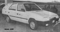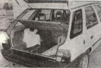 Foto: Milan JozífZadní, páté dveře jsou s Favoritem zcela shodné a zaměnitelné. Zkoušený vůz byl vybaven celistvým zadním spoilerem obklopujícím zadní sklo. Tento bezesporu působivý doplněk je výsledkem vývoje VVÚ Škoda ve spolupráci s naší afilaci Semex, sídlící v SRN. Jde o výlisek z vypěněného plastu s integrálním povrchem, vyráběný ve VVÚ Škoda ze zvlášť pro tento účel dovážených surovin, proto je zatím určen výhradně pro vývoz za valuty. Účinek tohoto spoileru v dešti jsme bohužel neměli příležitost vyzkoušet