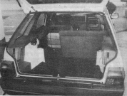 Foto: Milan JozífSedadla i dveřní výplně odpovídají Favoritu LS, popsanému podrobněji v AR 9/´89. Na snímku je třetina šířky zadních sedadel sklopená dopředu kvůli částečnému zvětšení zavazadlového prostoru. Je zřejmé, že sklopené opěradlo se vejde i se vztyčenou bezpečnostní opěrkou hlavy. Kapsu na zadní straně předního opěradla jsme instruktivně využili pro odložení našeho časopisu