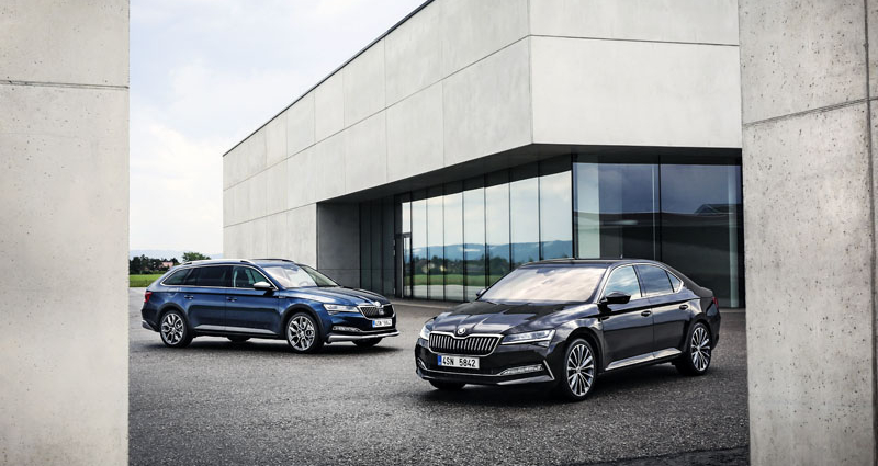 Superb, dodávaný jako liftback nebo -kombi střední třídy, patří pro značku -Škoda ke stěžejním modelům, jen loni jich svým zákazníkům dodala 137 500 a cel-kově produkce této řady dosáhla nyní 1 280 500 vozů. Největším evropským odbytištěm bylo loni Německo (19 200 vozů), zatímco v Číně se jich prodalo 43 700 kusů. Osvěženému zevnějšku vévodí výraznější příď s větší maskou, přepracovaným nárazníkem a na přání dodávanými matricovými světlomety LED, jež se ve voze Škoda objevují poprvé. Zajímavější než drobné změny v interiéru (např. nové materiály či větší přihrádka pro telefon) jsou nové asistenční prvky v čele s prediktivním tempomatem (viz dále), nouzovou asistencí na víceproudých silnicích a sledováním chodců s autonomním brzděním.