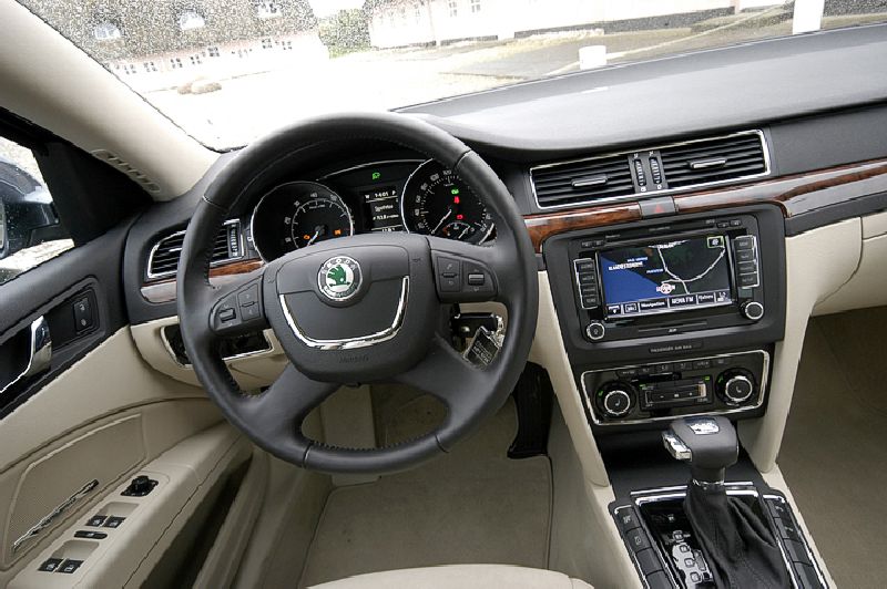 Z jiného soudku je ovšem špičková varianta, která z vidlicového zážehového šestiválce 3.6 V6 nabízí výkon 191 kW (260 k)/6000 min-1, což je nejméně o dvacet koní (15 kW) méně než u Passatu, sesterský Volkswagen musí totiž zůstat králem, pro německou značku existují běžně verze 206 kW (280 k) a 221 kW (300 k). I tak však jde o první sériově vyráběný osobní automobil značky Škoda, u něhož se oficiálně uvádí největší rychlost 250 km/h (nezkoušeli jsme), ale zrychlení 0 – 100 km/h za 6,5 sekundy je impozantní. Spotřeba benzinu také, v městském provozu podle metodiky EU činí 14,3 l/100 km, mimo město 7,5 litru a v kombinaci EU rovných deset litrů. Odpovídající hodnota emisí CO2 je v tomto případě 238 g/km. Šestiválcový model se vyrábí výhradně se samočinnou šestistupňovou převodovkou DSG (sedmistupňová je dimenzována pro nižší točivý moment, takže slouží jen některým čtyřválcům) a trvalým pohonem všech kol s mezinápravovou spojkou Haldex. Dlužno říci, že si nový Superb 3.6 FSI (ano, přímý vstřik benzinu) v ničem nezadá s renomovanými konkurenty, v nabídce prostoru před zadními sedadly je značně převyšuje (stejně jako všichni sourozenci). Šedesátilitrová nádrž při ostré jízdě však vydrží tak na čtyři stovky kilometrů…