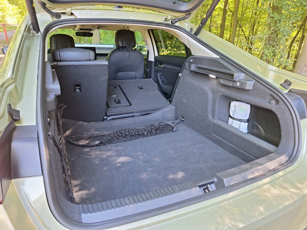 Na rozměrnou masku typického tvaru po stranách navazují příplatkové matricové světlomety LED, jež noc mění v den, a přitom spolehlivě chrání okolí před oslněním. Kapotu oživuje pár podélných prolisů kolem loga značky na přední hraně, za pozornost stojí osmnáctipalcové ráfky Bosona s aerodynamickými (a demontovatelnými) plastovými prvky. Při pohledu z profilu je znát, že řidič sedí blízko přední nápravy, jinak by totiž Superb za sloupky B nenabídl tak královský prostor. Zadní sedadla mají pohodlné, ale zároveň i dlouhé sedáky, a přitom před nimi zůstává snad až nevyužitelná porce místa (toho je ve čtvrté generaci již dostatek i do šířky). Samostatnou kapitolou je samozřejmě zavazadlový prostor. Kromě ohromného objemu má i závěsy pro tašky, schránky za podběhy i pod podlahou, různé promyšlené sítě a posuvné příčky, takže pokud častěji nevozíte třeba pračky, věnujte těch 40 tisíc korun na příplatek za kombi raději třeba do záruky prodloužené na 5 let nebo 200 000 km.