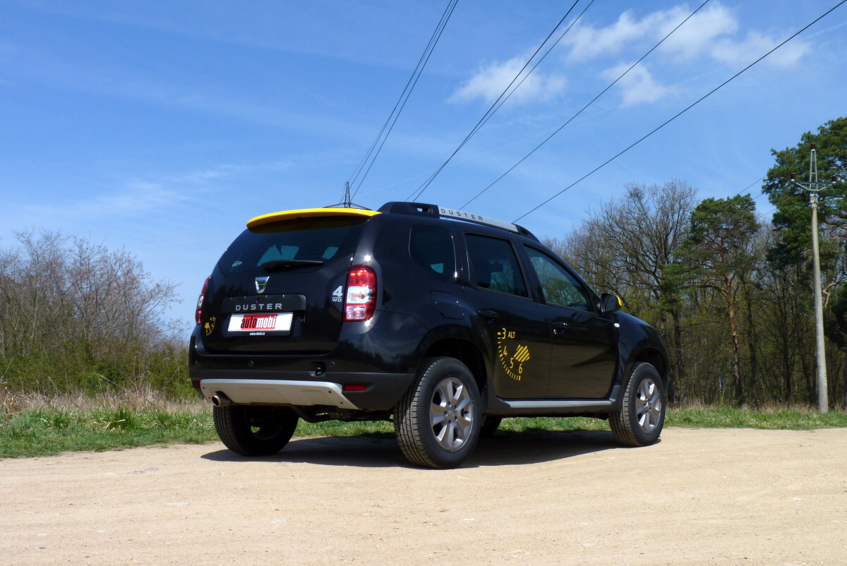 Nově jsme pro vás vyzkoušeli Duster ze speciální edice Blackstorm. V nabídce českého importéra je vsunuta mezi výbavové stupně Arctica a Exception, a i když tak tvoří jakýsi pomyslný zlatý střed, míří spíše výš. V celkovém pohledu to ale nijak nepoznamenává cenu: Duster Blackstorm je k dispozici výhradně s pohonem všech kol (tedy i lepším podvozkem) a s motorem 1.6i/77 kW stojí velmi zajímavých 364 900 Kč a s námi testovaným dieselem 1.5 dCi/80 kW pak 419 900 Kč. V základní výbavě přitom najde zákazník vše potřebné asistentem rozjezdů do kopce, stabilizací ESC a šestnáctipalcovými litými ráfky počínaje a dálkovým centrálním zamykáním, elektricky ovládanými dveřními okny a zrcátky, manuální klimatizací či palubním počítačem konče.