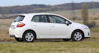Hybridní pohon neklade na řidiče žádné zvláštní nároky, ba právě naopak. Systém se spouští tlačítkem, řidiči sdělí READY (připraven), a pak joystickem na středové konzoli zvolíte směr jízdy. Ovládání je dvoupedálové, jako u vozů s automatickou převodovkou. Překvapením je vynikající odhlučnění poháněcí soustavy, a to i v případě, je-li zážehový motor v činnosti. Až dva kilometry můžete ujet jen elektricky, bez výfukových plynů a opravdu tiše. V zádi uložené akumulátory Ni MH jsou poměrně kompaktní, objem zavazadlového prostoru činí velmi slušných 279 l. Vedle standardního jízdního režimu lze volit tlačítky na středové konzole programy EV, eco a Power. V módu eco je omezena reakce škrticí klapky na příliš agresivní sešlápnutí akcelerátoru, při sešlápnutí na 80 % se aktivuje jen 50 % výkonu, zatímco v režimu Power dává 50% sešlápnutí už 80 % výkonu. Ve standardním režimu Normal se lze až do 50 km/h rozjíždět elektricky, což ovšem závisí na jízdních podmínkách a stavu akumulátorů. V režimu EV je pohon čistě elektrický do rychlosti 50 km/h a vzdálenosti dvou kilometrů. Činnost pohonné jednotky a využití energie lze sledovat na palubním displeji před řidičem. Plně pětimístný Auris HSD zrychluje z 0 na 100 km/h za 11,4 sekundy a dosahuje největší rychlosti 180 km/h, tedy v provozu rozhodně nezdržuje! Jízdní vlastnosti jsou velmi dobré, podvozek využívá osvědčených prvků se vzpěrami McPherson vpředu a vlečenými rameny spojenými torzně poddajnou příčkou vzadu, hřebenové řízení má úsporný elektrický posilovač a na všech kolech jsou kotoučové brzdy, doplněné elektrickým regenerativním brzděním. V základní výbavě nechybějí ABS/EBD, stabilizační systém VSC+/TRC a sedm airbagů. Spotřeba paliva podle metodiky EU činí velmi příznivých 3,8 l/100 km a emise CO2 pouhých 89 g/km. Podle našich zkušeností i při ostřejší jízdě lze udržet spotřebu pod pět litrů na stovku kilometrů.