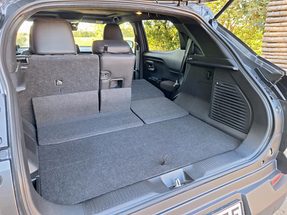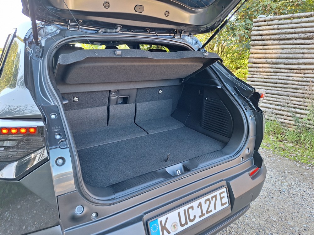 Kdyby byla zadní sedadla v této Toyotě uložena o trochu výše, pro hlavu by tam stále bylo dost místa, a navíc by cestující nemuseli mít kolena tak blízko k bradě. To by však rozhodilo propojení s prostorem pro zavazadla. Ten je už tak docela malý, byť se pod jeho podlahu do objemných schránek pohodlně vměstnají nabíjecí kabely, povinná výbava a další drobnosti. Potěší důmyslné řešení rozšiřující variabilitu. Sedák je asymetricky dělený a podélně posuvný, zatímco opěradlo je děleno na tři části (40:20:40), přičemž střed lze vyklopit vpřed pro uložení dlouhých předmětů a sklon krajů nastavit nezávisle.
