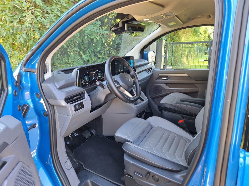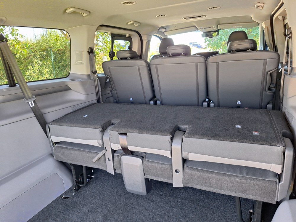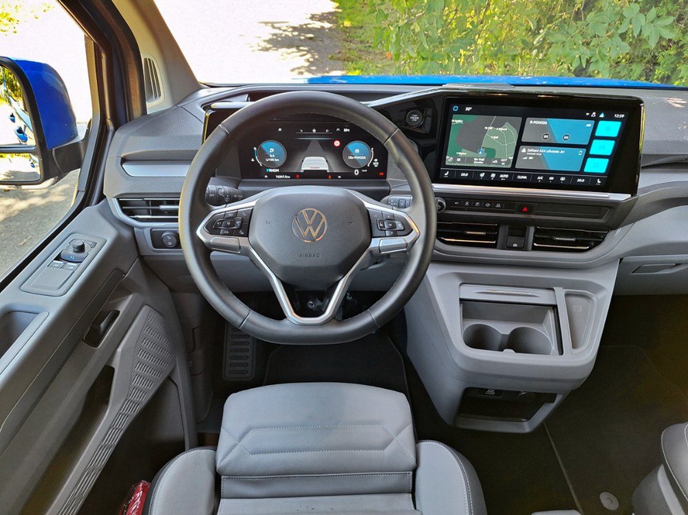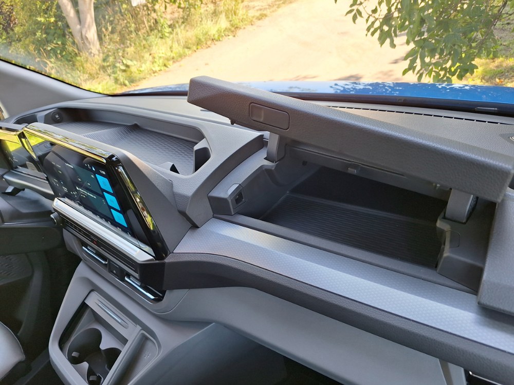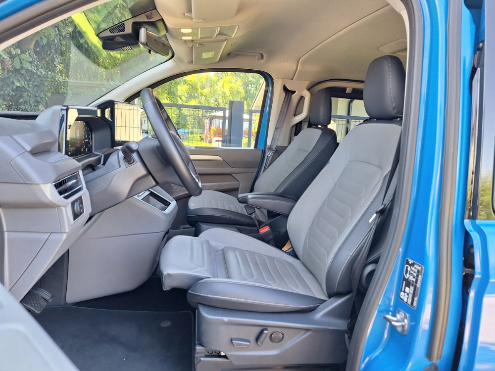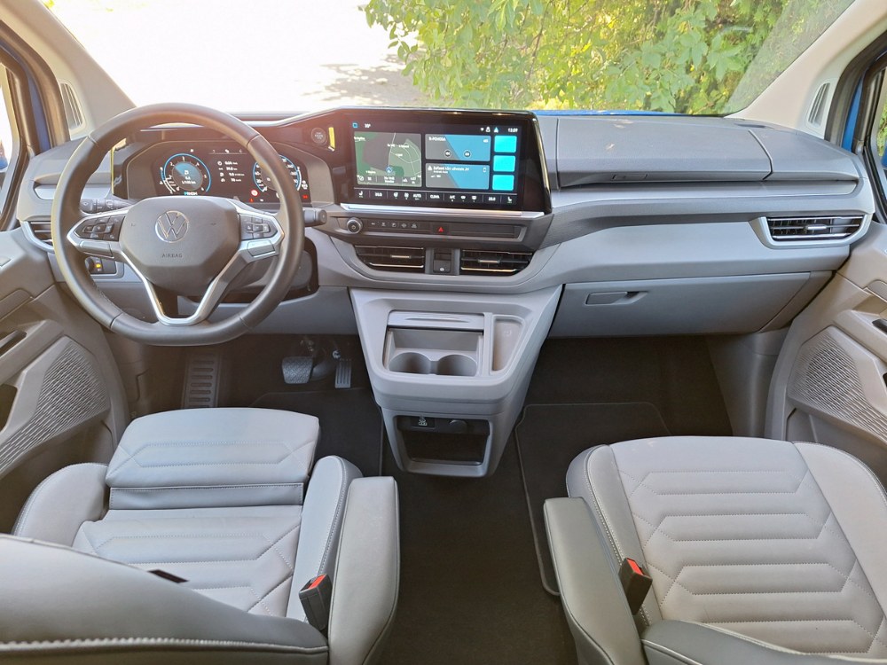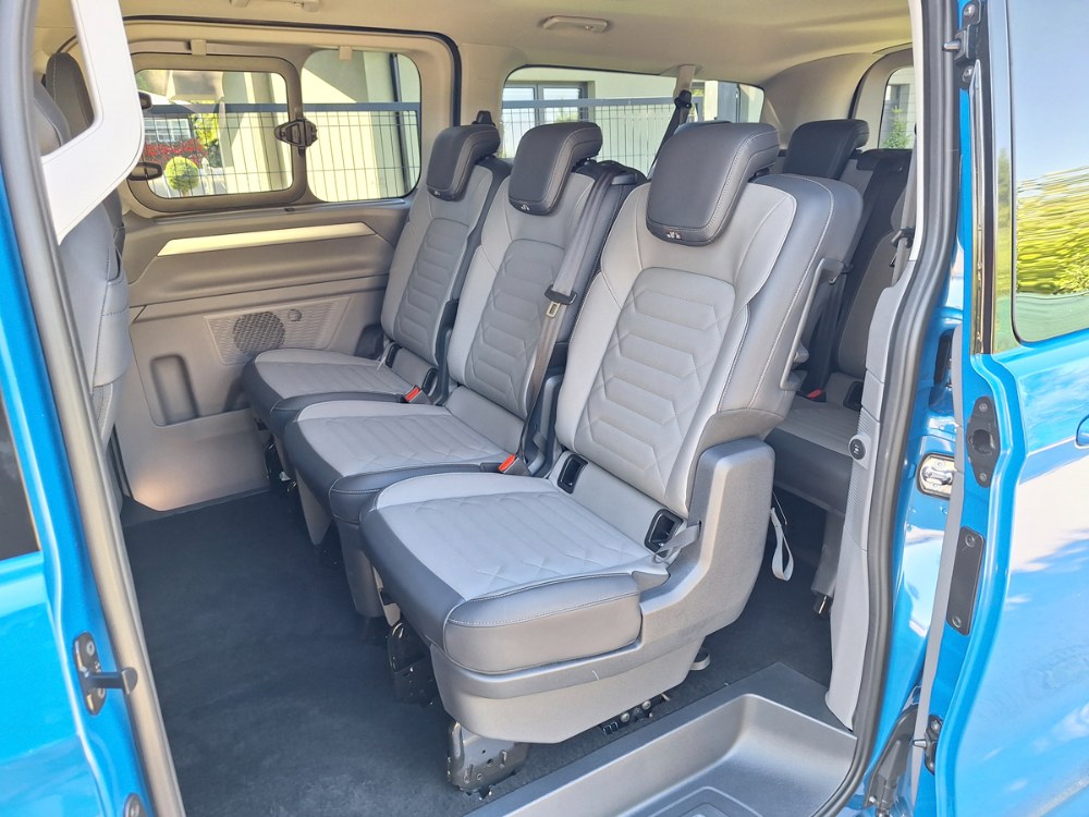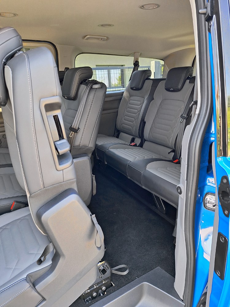 Ačkoli je nová Caravelle větší než její předchůdkyně, za jejím volantem se cítíte příjemněji a skoro jako v osobním voze. Samozřejmostí je znamenitý výhled a doplňuje jej více skloněný sloupek volantu. Těšit se můžete na všechny vymoženosti moderních komfortních a bezpečnostních asistentů včetně adaptivního tempomatu. Grafika je Volkswagen, ale struktura menu Ford, což znamená zejména široké možnosti nastavení palubních funkcí. Ačkoli výrobce vnitřní rozměry neudává, je v nové Caravelle citelně více místa do všech směrů, a to ve všech třech řadách sedadel. Dvě zadní lze sice poměrně snadno demontovat, ale nespočívají v posuvných kolejnicích, nýbrž v přesně daných kotevních bodech, což omezuje variabilitu. Další výtka směřuje k některým z USB portů, umístěných občas v místech ohrožených při nastupování a vystupování posádky.