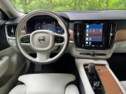 Nechybí ale ani široká paleta doplňků pro komfort a příjemnou atmosféru uvnitř. Samozřejmostí je proto navigační systém integrovaný do operačního systému Google Android s možnostmi online aktualizací i digitální přístrojový štít s displejem zvětšeným na 12,3 palce či bezdrátové nabíjení telefonů. Jistě vítané je též kožené čalounění a dřevěné obložení interiéru. Volvo již také u typu S90 nahradilo kůži na volantu syntetickým materiálem, nicméně nutno říci, že je hapticky i na pohled od přírodního materiálu k nerozeznání.