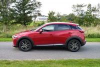 Odpoledne jsme s Tomášem Hyanem začali zkouškami vozu Mazda CX-3 se vznětovým motorem Skyactiv-D o objemu 1,5 l a výkonu 77 kW (105 k) v provedení s pohonem všech kol a manuální převodovkou. Milé a hbité kompaktní SUV potěšilo hravým, lehkým a dynamickým designem, i přes vyšší stavbu se ovládá lehce jak běžný osobní vůz, podvozek z míry nevyvedete ani dynamickou jízdou. Je ale třeba zvyknout si řadit nejpozději kolem 3000 min-1, pak už motor příliš ochoty k životu nemá. Následoval elegantní Mini Clubman ve špičkové verzi Cooper S s výkonem 141 kW (192 k), jenž nás již při premiéře na letošním IAA ve Frankfurtu zaujal originálním zpracováním zádi s do stran se otevírajícími, symetricky dělenými dveřmi (rozpačitým dojmem působí brzdové svítilny až dole v nárazníku…).