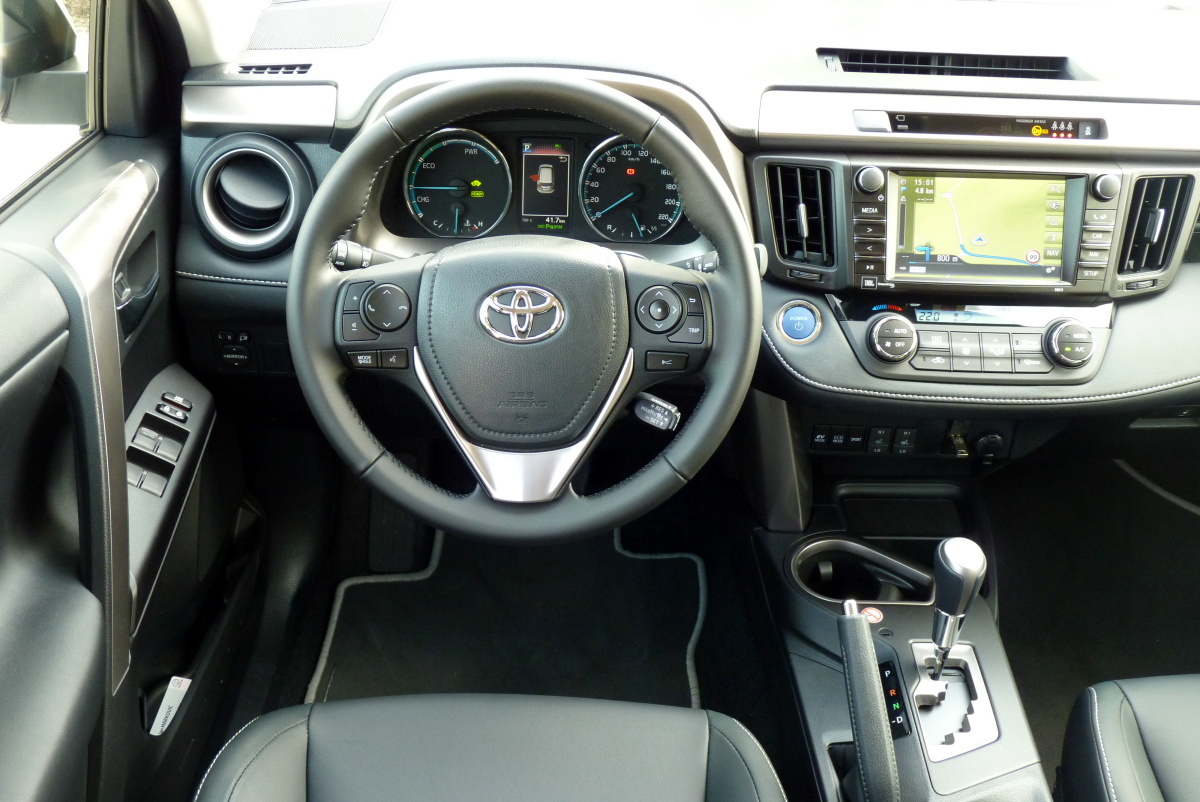 Toyota RAV4 Hybrid příjemně překvapila ovladatelností a komfortem tlumení, jakož i prostorem na všech sedadlech. Přístrojový štít je pro Hybrid specifický, otáčkoměr byl nahrazen ukazatelem hospodaření s energií a středový barevný displej nabízí širokou škálu dalších provozních informací. Zážehový motor je znamenitě sladěn s řízením převodovky a elektromotorů, ke spínání a vypínání jednotlivých segmentů dochází zcela plynule a neznatelně. Akumulátory jsou umístěny pod zadními sedadly, což si vynutilo pevné umístění zadních sedáků. Opěráky lze přesto sklápět, s podlahou „kufru“ (pod ní zbylo místo na rezervní kolo!) vzniklou hranu přemosťuje jakási rampa s úložnými prostory pro drobnosti.