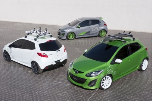 Všetky tri koncepty oplývajú vyslovene športovým motívom, čo možno naznačuje prvky v dizajne novej Mazdaspeed2.Prvá z nich je sivo sfarbená Mazda 2Evil Concept. Tento koncept je inšpirovaný autom na víkendové pretekanie na okruhu, ale môže fungovať aj ako mestské približovadlo. Karoséria bola upravená tak, že agresívnejší predný spojler a hlbšie postranné prahy zlepšujú aerodynamiku a vytvárajú celkový dojem, že auto je nižšie.